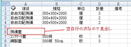 その行を空白行、次の行を見出し行と判断します。