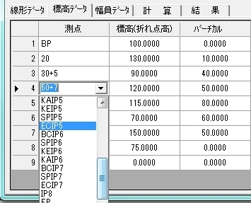 ・測点の折れ点高を入力します。計画高ではないので注意してください。