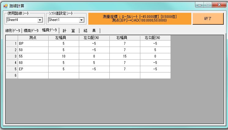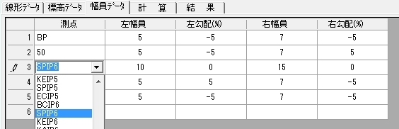 入力した測点をはさむ測点(離れていてもOK)の幅員が設定されていれば、計算して幅員を設定します。