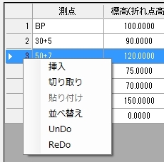 | 並べ替え | : | 測点が並べ替えられる場合、測点を並べ替えます。 (線形測点は並べ替えられません。) |
