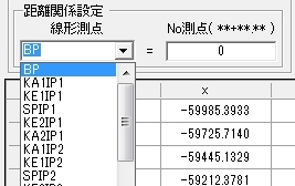※IP点名は以降の操作で、線形測点を選択するプルダウンメニュー、結果に表示される時は、